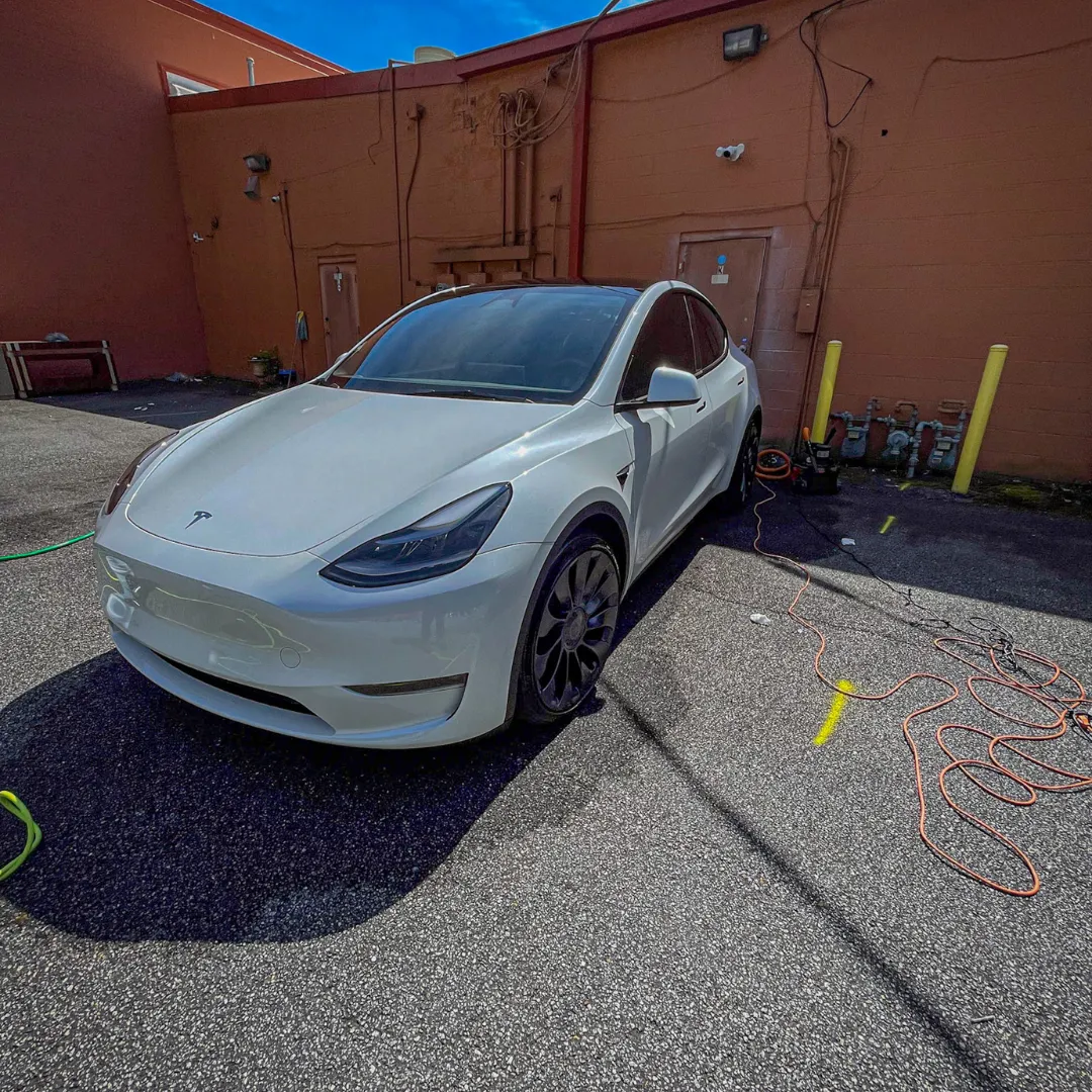 Paint correction is a professional polishing process that removes swirl marks, light scratches, oxidation, and other paint imperfections. If your vehicle’s paint looks dull, scratched, or has swirl marks from automatic car washes, paint correction can restore the surface and bring back a deep glossy finish. This service is often recommended before applying ceramic coating.